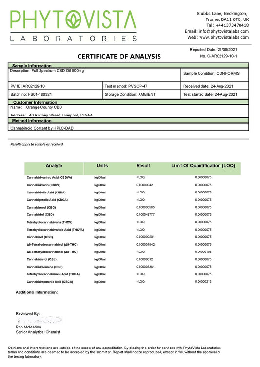 Orange County CBD 500mg Full Spectrum CBD Oil - 10ml