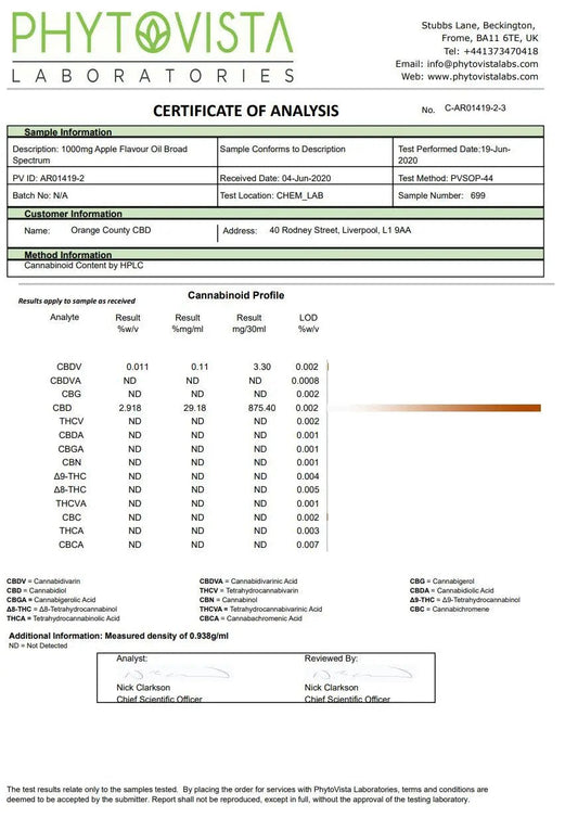 Orange County CBD 1000mg Flavoured Tincture Oil 30ml
