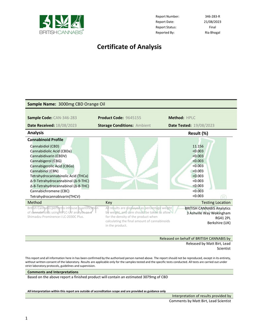 Hempura 3000mg Precision Sport CBD Broad Spectrum Oil Orange Flavoured - 30ml