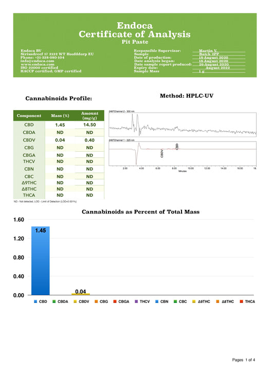 Full-spectrum CBD paste contains a complete range of cannabinoids, terpenes, and flavonoids, maximizing the entourage effect for greater therapeutic benefits.