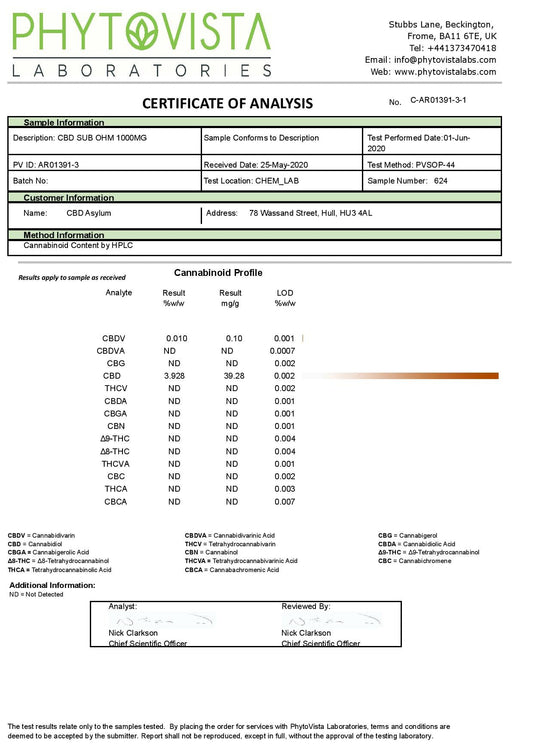 CBD Asylum 1000mg Absolute CBD Oil 20ml (BUY 1 GET 2 FREE)