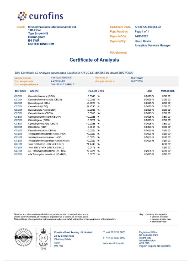 - All Infused Amphora CBD vape products undergo third-party lab testing for content and purity