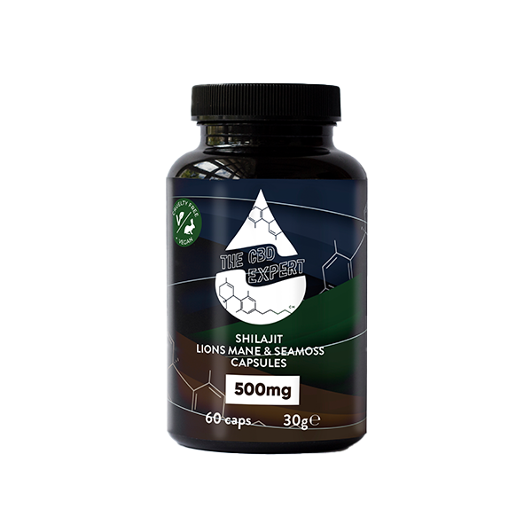 The CBD Expert 500mg Shilajit Lions Mane & Seamoss Capsules - 60 Caps